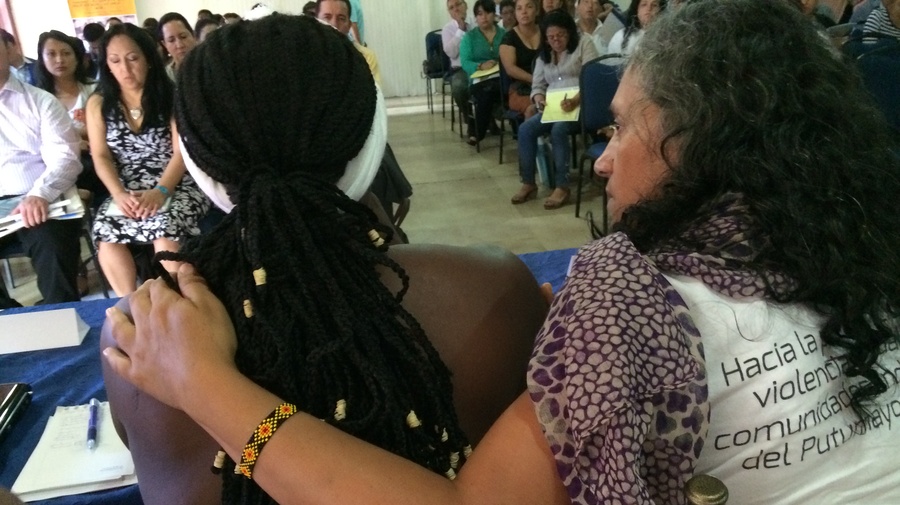 Women from Ecuador and Colombia take part in the recent meeting in Lago Agrio, exchanging their experiences in the struggle against sexual violence.