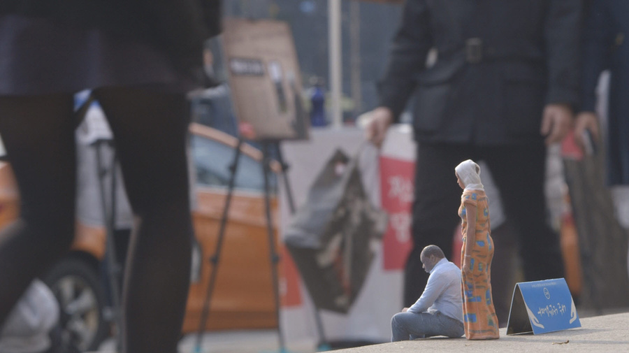 The results - dozens of figurines, each no larger than a handspan - are displayed in hidden places such as stairways, shelves and windowsills of the Seoul Museum of Art. Visitors who find the figurines can listen to the refugees' stories by connecting their mobile phones with the QR/NFC codes inserted in each figurine.