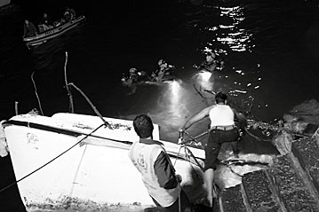 Divers look for survivors after the boat foundered.