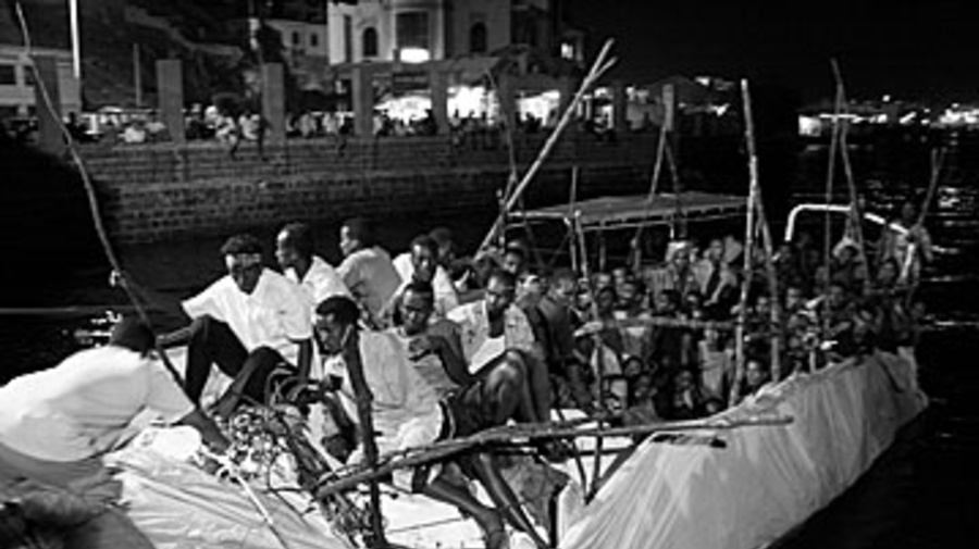 The boat carrying Somalis and Ethiopians reaches the pier at Steamer Point in Aden.