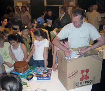 Packing the toys at the Quai Branly Museum.