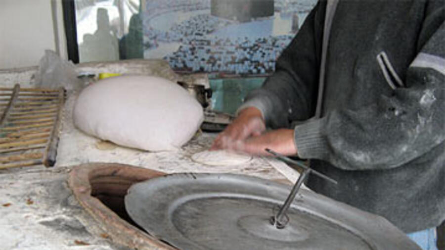 An Iraqi prepares samoon bread in his new bakery, one of many small Iraqi-run businesses that have opened in the 6th of October City near Cairo.