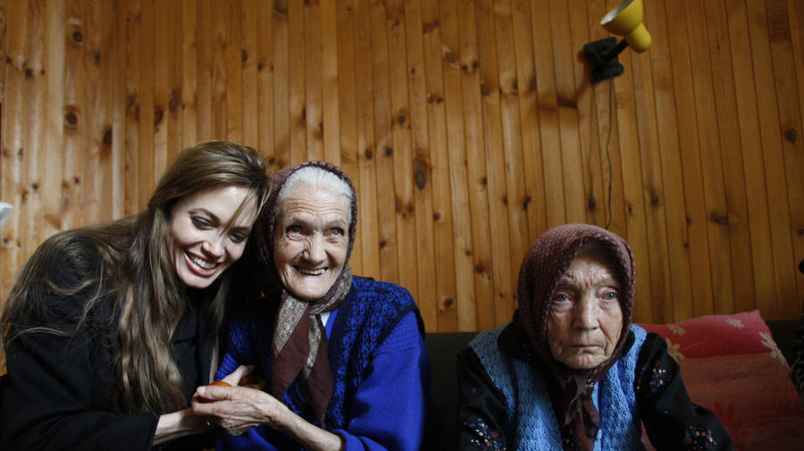 SARAJEVO, Bosnia and Herzegovina, April 6 (UNHCR) - UNHCR Goodwill Ambassador Angelina Jolie has called for steps to end the continuing suffering of displaced victims of the Bosnian War after hearing their harrowing tales and seeing their grim living conditions during a brief visit this week.