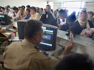 On Wednesday, Clerc travelled to Touloum, near the town of Iriba, where UNHCR has set up a camp to receive refugees gathered around the border town of Tine. More than 4,800 people have been transferred to Touloum so far. UNHCR staff guided the Goodwill Ambassador through the site, and explained the process that newly-transferred refugees must go through - disembarking from the trucks, undergoing registration, and receiving food and plastic sheeting to build their own shelters. Clerc also saw food and water distribution at Touloum and was shown a newly-dug water well on the site.