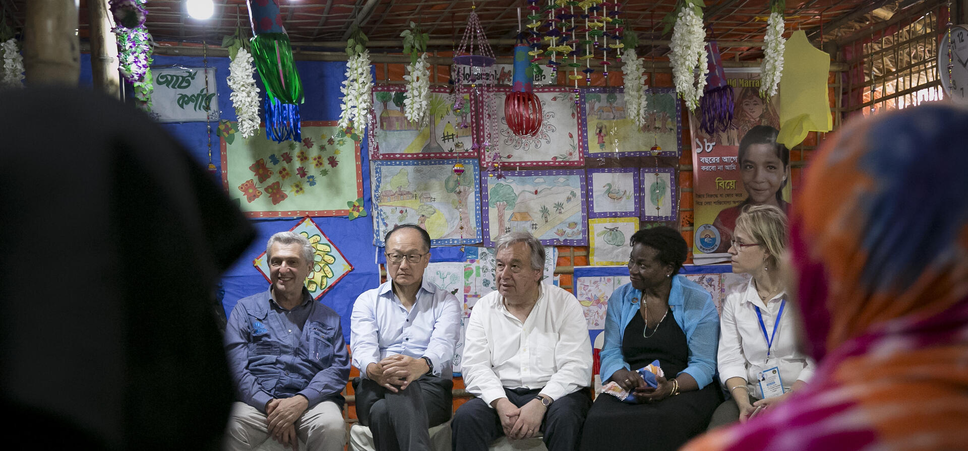 He and Kim are at the end of a two-day visit to Bangladesh to garner more support for refugees and their hosts. They were joined on the trip by UN High Commissioner for Refugees Filippo Grandi and UNFPA Executive Director Natalia Kanem.