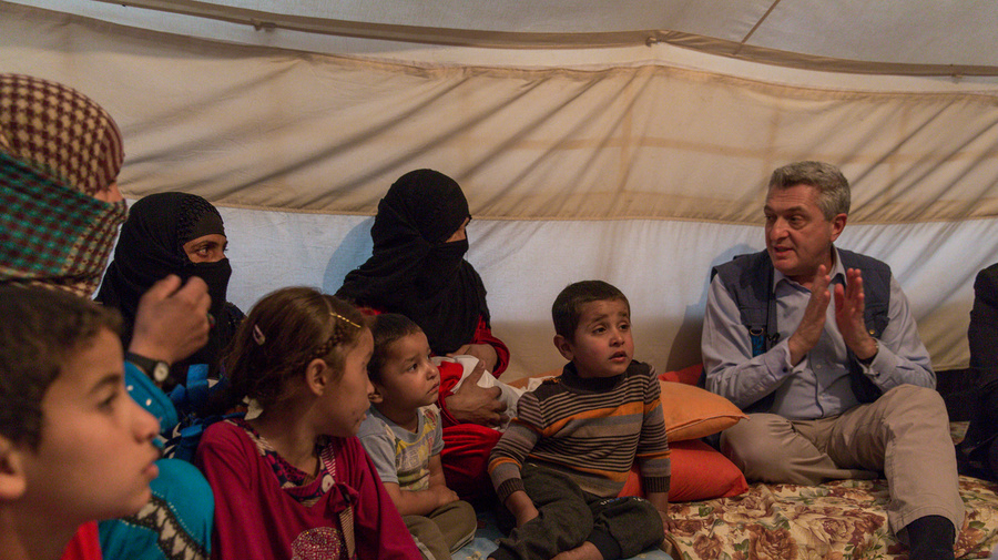 Speaking with families who fled Mosul assault, UN refugee chief Filippo Grandi stresses the need to protect civilians and prevent further displacement.