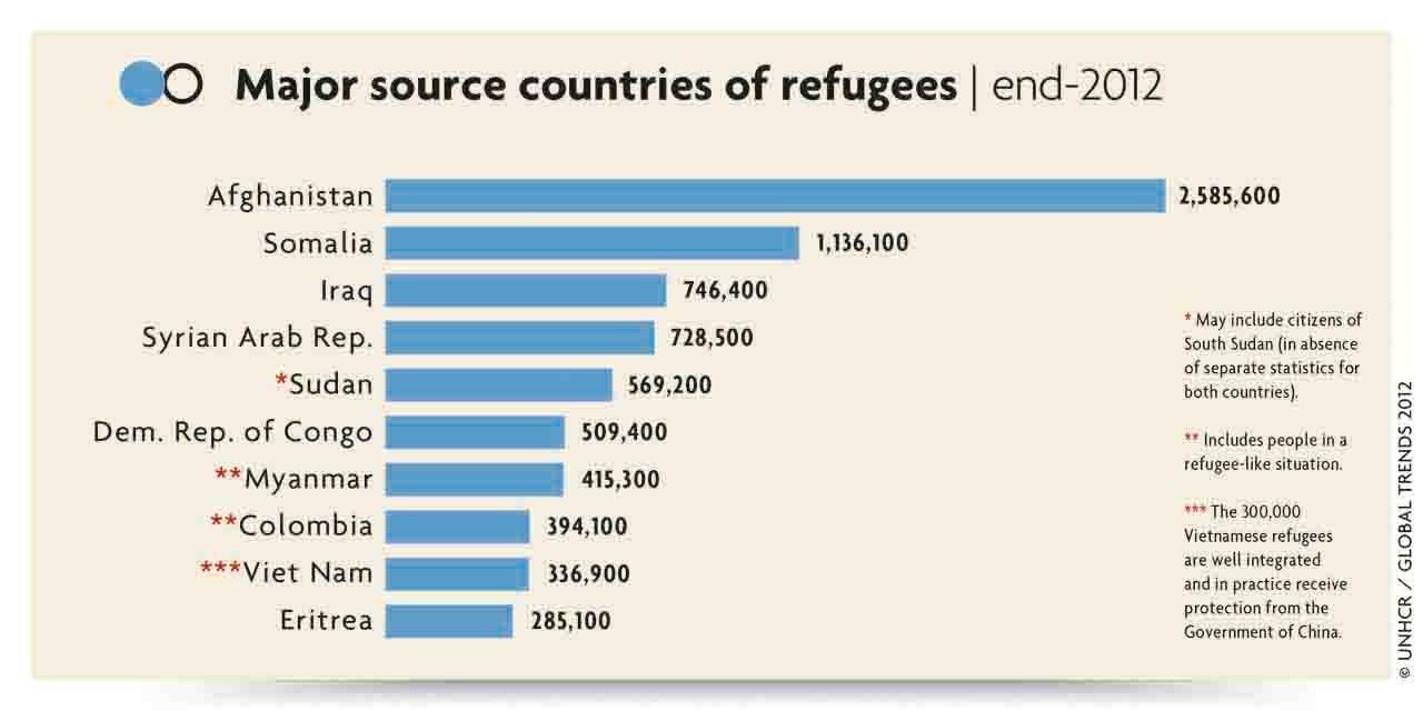 Major source countries of refugees, end 2012