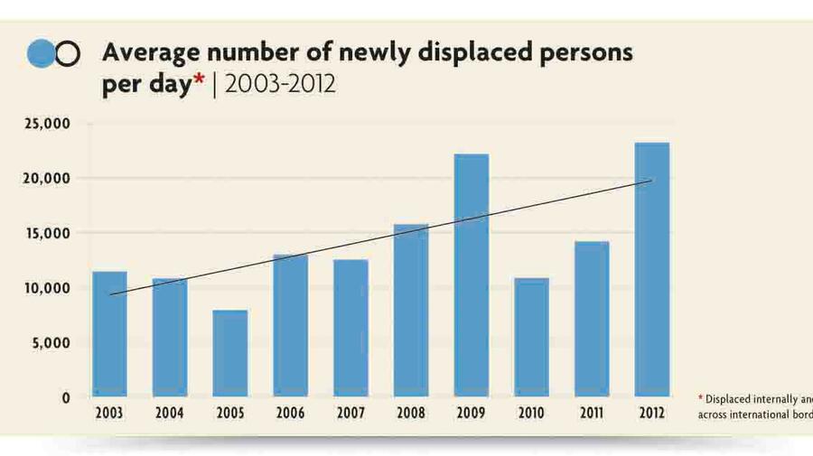 Average number of newly displaced persons per day 2003-2012
