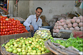 A UNHCR grant helped Iraqi refugee Ali Dakhil Aziz to set up his vegetable stall in Rawalpindi.