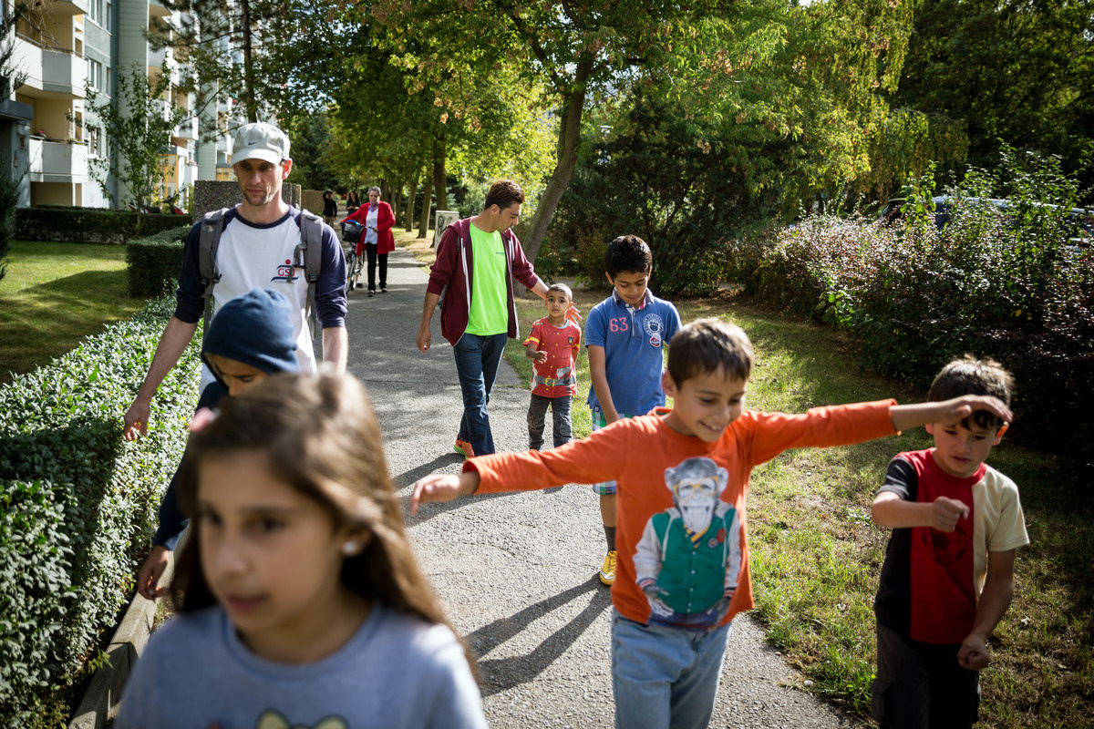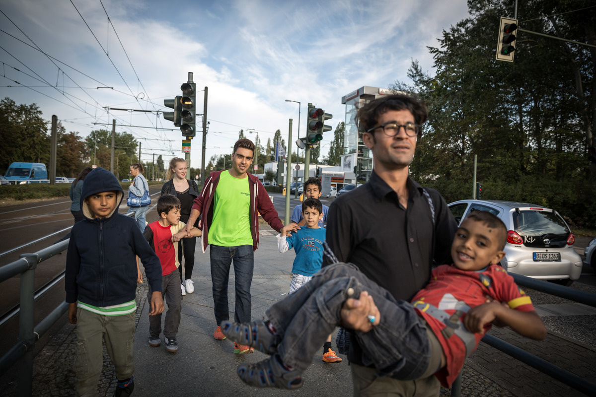 His eight wards for the afternoon, all of them under 10 years old, are asylum-seekers from Afghanistan, Iraq and Syria. Every Monday, Hassan and his colleagues from Berlin-based youth project Ankommen pick them up from their shelter and accompany them to a nearby youth club. It is a time for burning off excess energy, playing games and learning new skills.