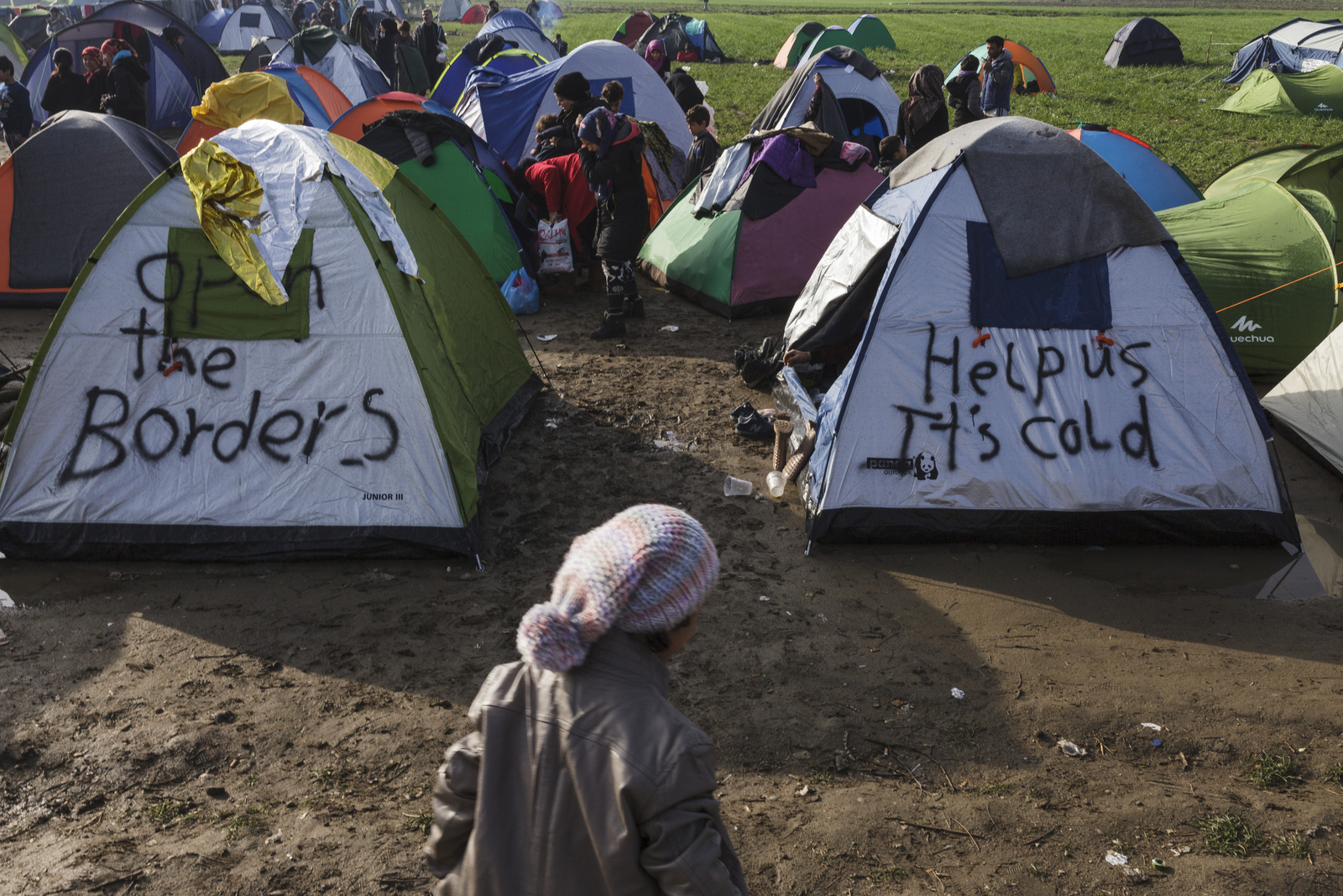 Thousands of men, women and children, mainly fleeing danger in Iraq, Syria and Afghanistan, run into barriers.