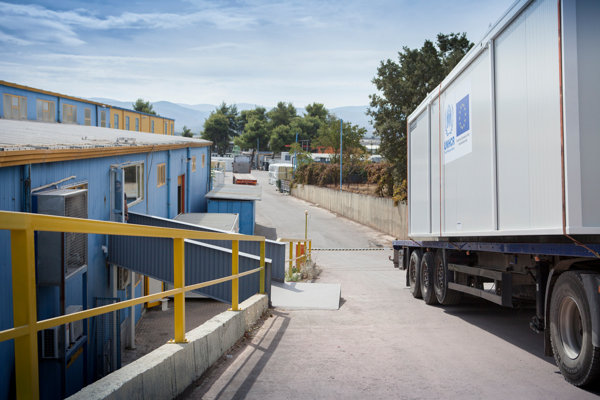 The Nea Kavala accommodation site for refugees in northern Greece is one of eight government-run sites in the country where UNHCR, the UN Refugee Agency, has started replacing tents with residential containers, known as prefab houses.
