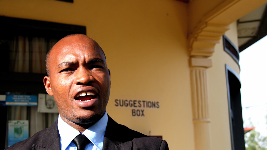 Emmanuel Kabumba stands just outside the reception area at his new place of employment. A refugee from North Kivu province in the Democratic Republic of the Congo, Emmanuel began working at the hotel in February 2014.