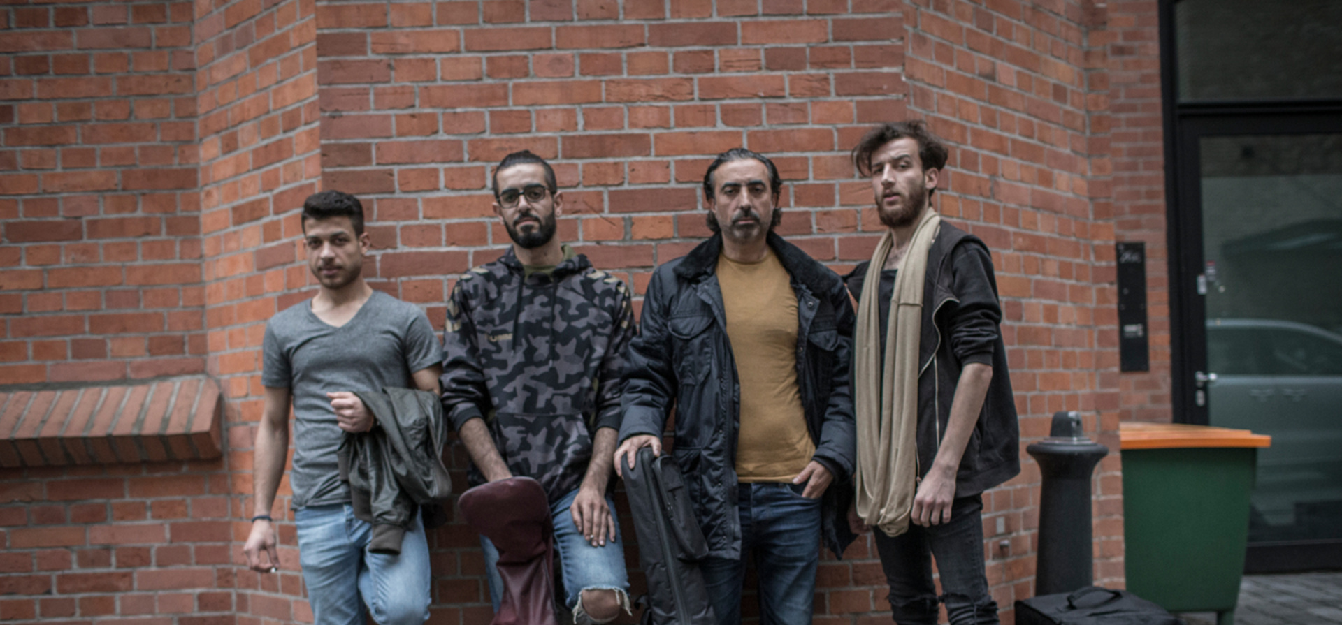 Musiqana band members Abdallah Rahal, Alaa Zaitouna, Adel Sabawi and Ali Hasan after practicing at the Super Sessions cafe in Berlin.