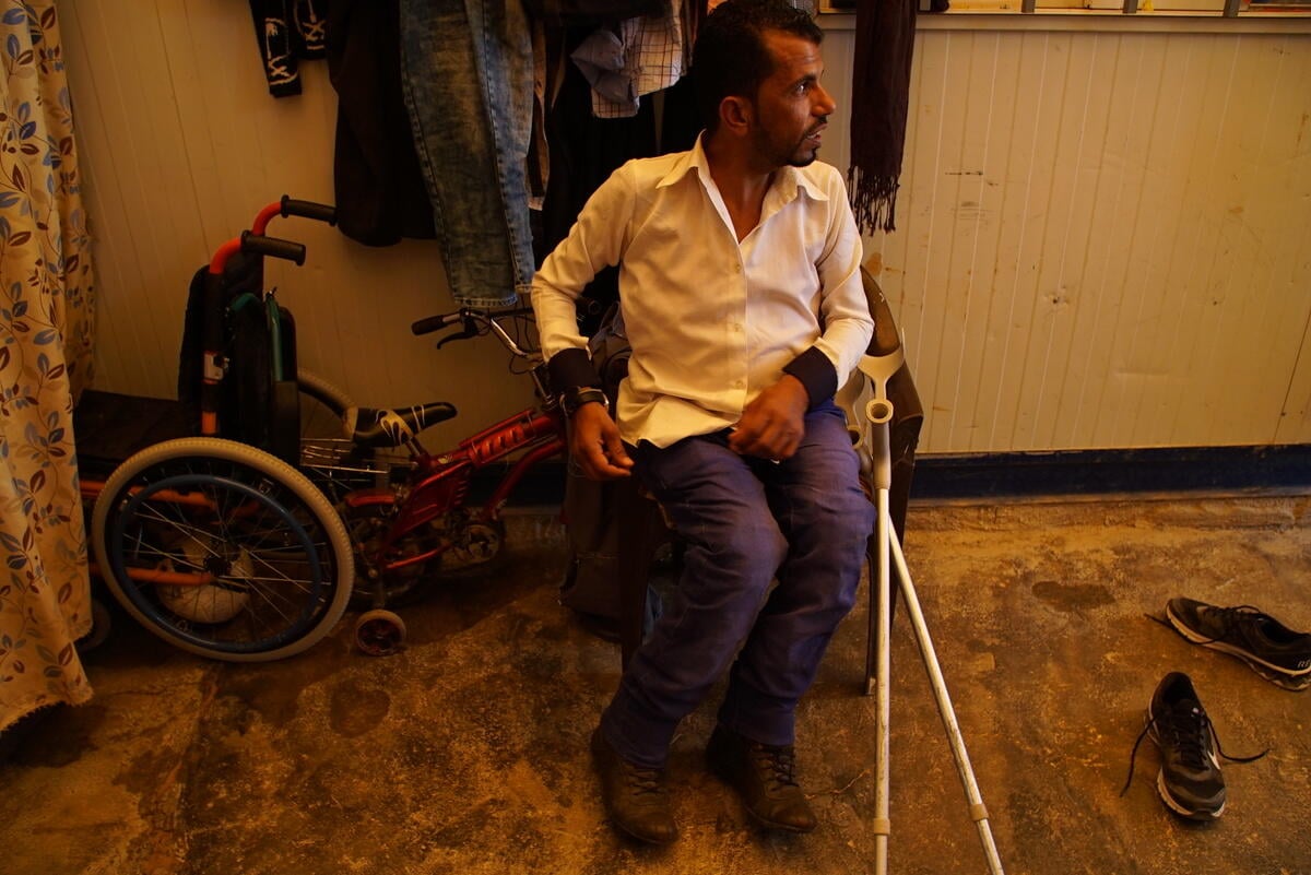 Ahmed starting acting at the age of 15, at a specialist school for disabled youngsters back in Syria. A hereditary muscular disorder requires him to use crutches and a specially adapted scooter that he built himself to navigate the camp’s rough terrain.