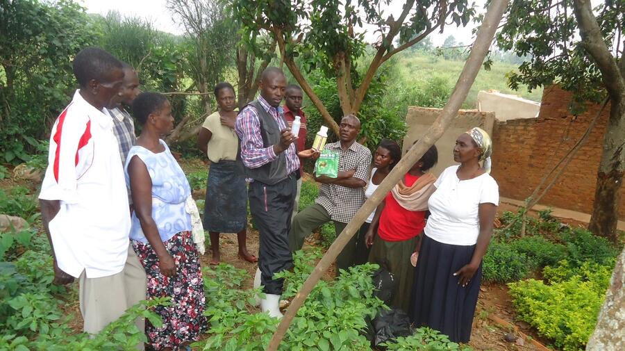 Chilli pepper growers receive training on the different products that can be produced and marketed from the chilli peppers they are growing at Rwamwanja settlement in south west Uganda.