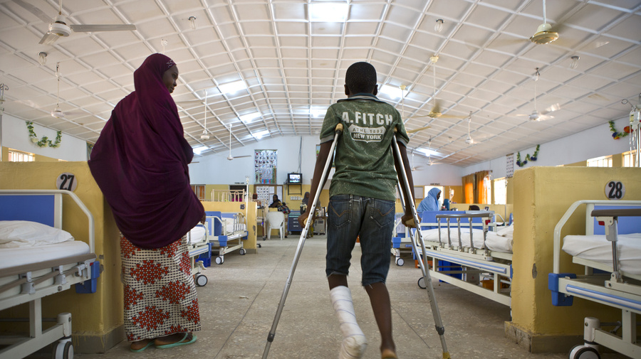 This 14-year-old boy was shot when gunmen attacked his school in Nigeria, killing three of his friends. His parents will take him away from the area.