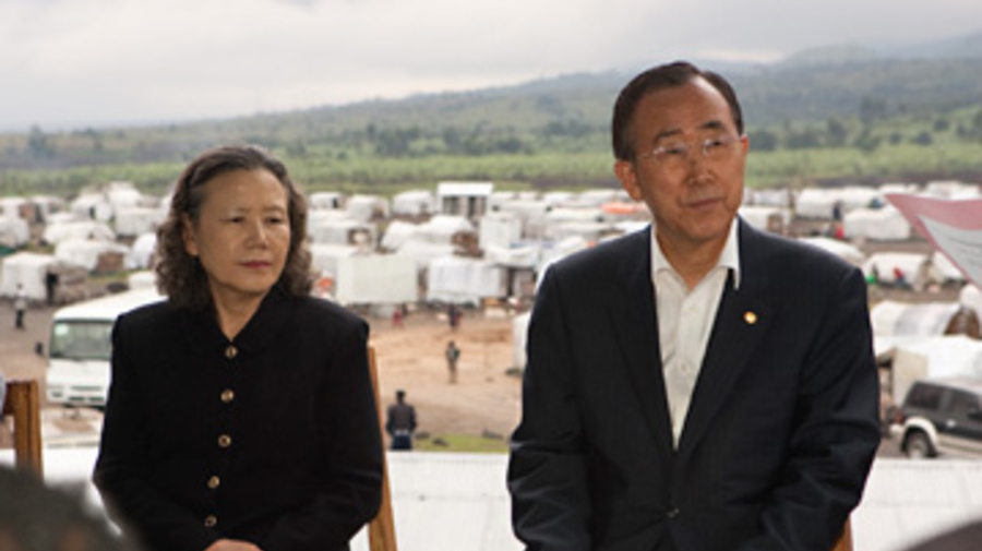 UN Secretary-General Ban Ki-moon with his wife at Kibati.