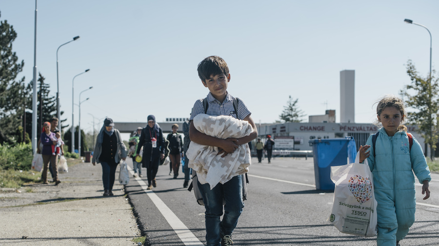 NICKELSDORF, Austria, Sept 25 (UNHCR) - They stride, sometimes even stumble, over the Austrian border and into the picture postcard town of Nickelsdorf. Among them are women and children, many of whom have been travelling for days, weeks, even months. They fled their war-torn homelands, trekking across Turkey, Greece, and the Balkans.