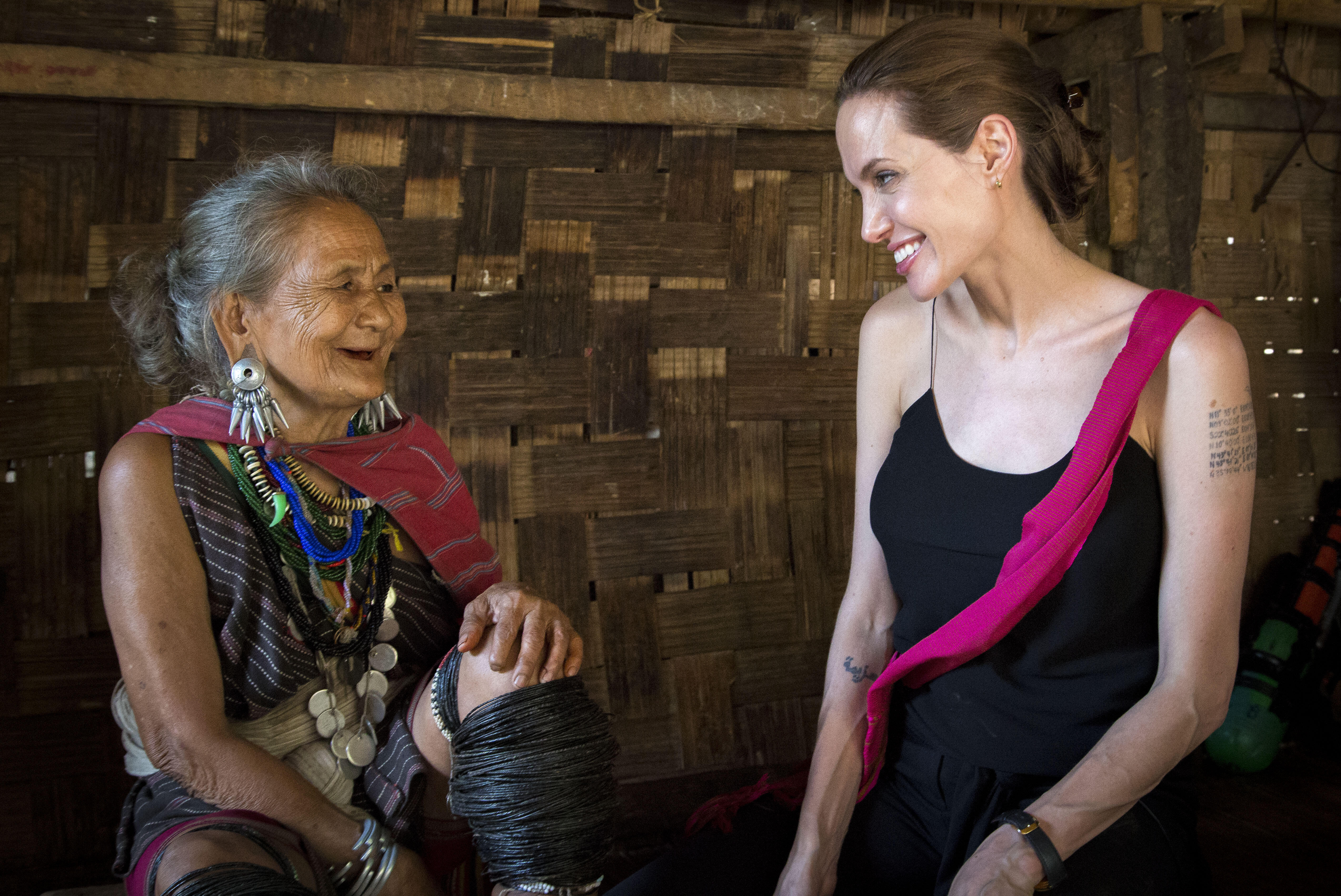UNHCR Special Envoy Angelina Jolie visits ethnic Karenni refugee Baw Meh, age 75, and her family from Myanmar, in Ban Mai Nai Soi refugee camp. The camp is located approximately two kilometres from the Thai-Myanmar border.