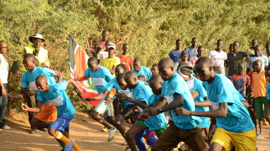 Refugees in Kenya's Kakuma camp take part in a peace run to mark World Refugee Day.