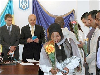 The first travel documents were presented by Hennadiy Moskal, head of the State Committee for Nationalities and Migration, to 20 refugees in the Ukrainian capital of Kyiv in June this year.