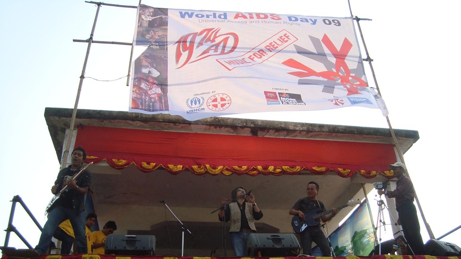 Among overseas events held to mark World Aids Day, was an awareness-raising concert for refugees and local communities in eastern Nepal. The event, held at a school in Damak with support from FC Barcelona, featured a wide range of music, including Nepali folk, raga, rock, funk, blues and jazz.