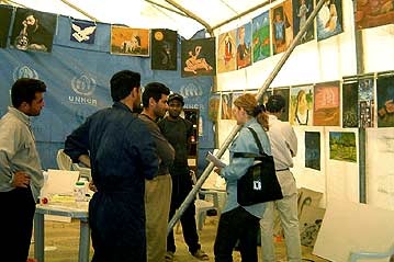 The painting workshop in Al Karama makeshift camp on the border of Iraq and Jordan.