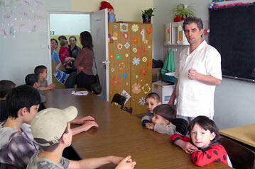 Young asylum seekers from Chechnya are all ears as a class begins at the Ciolka Street reception centre in Warsaw.
