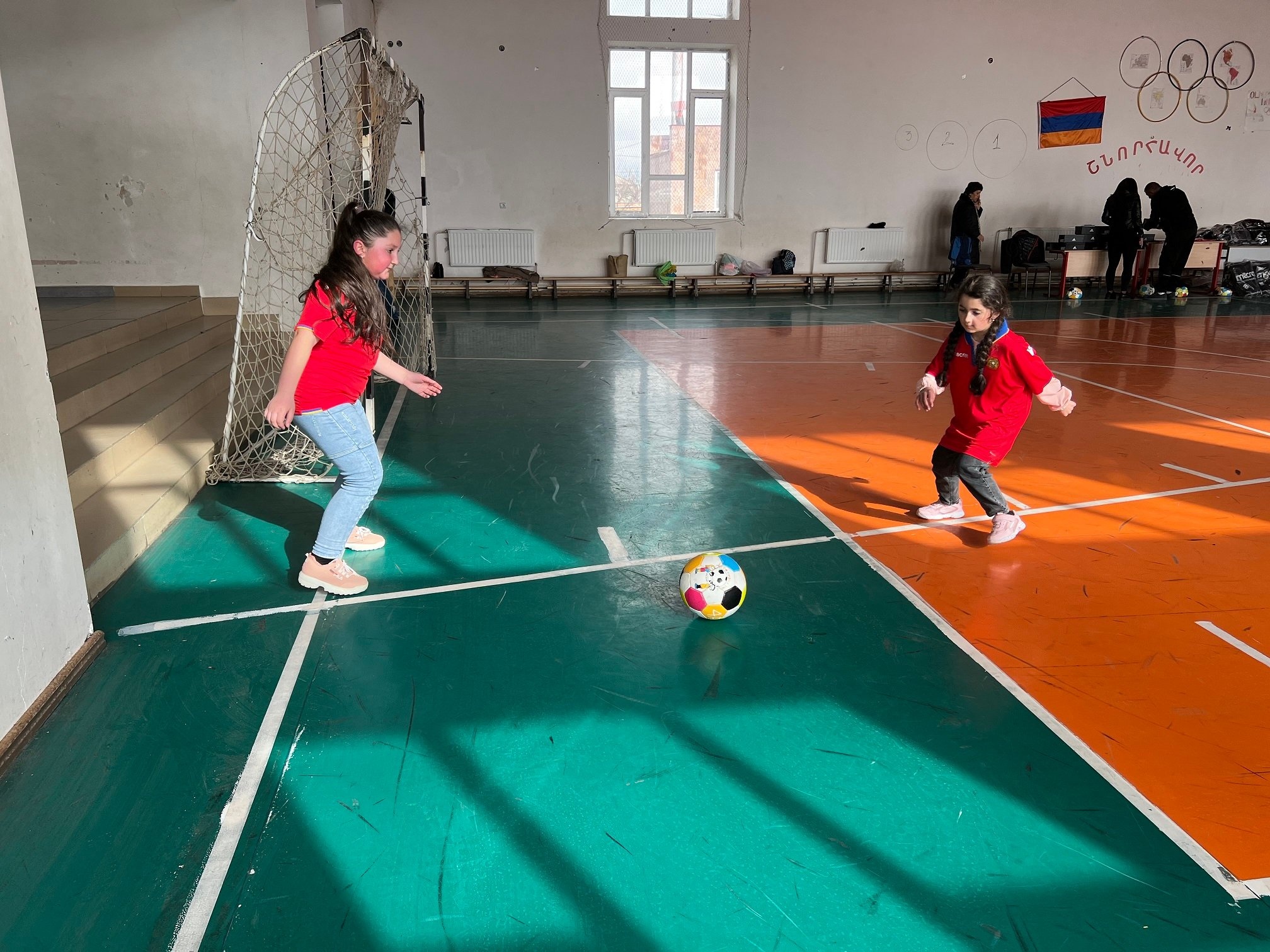 The project is now in full swing in six host regions in Armenia: Kotayk, Armavir, Ararat, Syunik, Vayots Dzor, and Gegharkunik. Currently, around 150 children – predominantly from families displaced from Nagorno-Karabakh – and local children are enrolled in grassroots football teams, enjoying their regular training sessions, tournaments and activities conducted on local sport pitches by community-based coaches carefully selected by the community and the FFA.