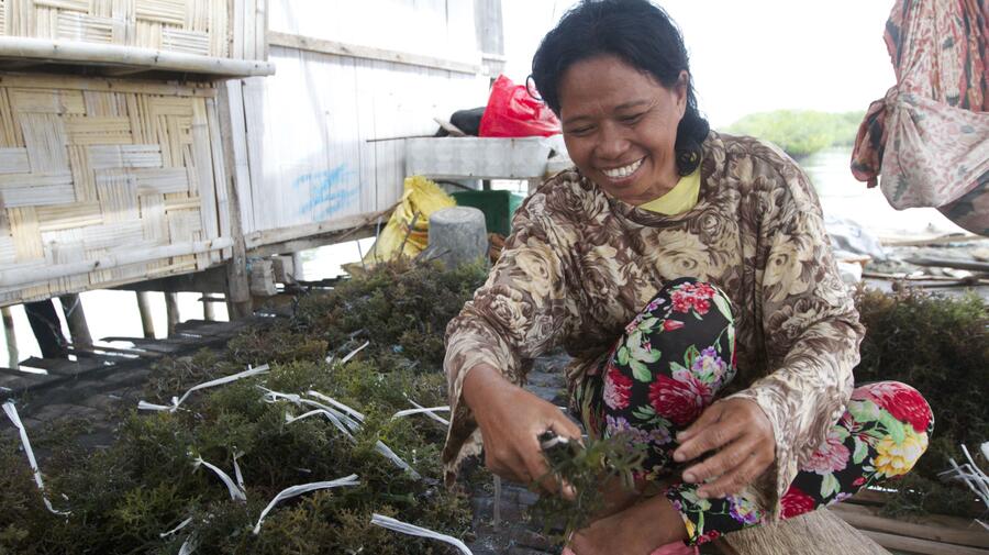 المفوضية تساعد العائدين إلى مينداناو على كسب العيش من خلال الأعشاب البحرية