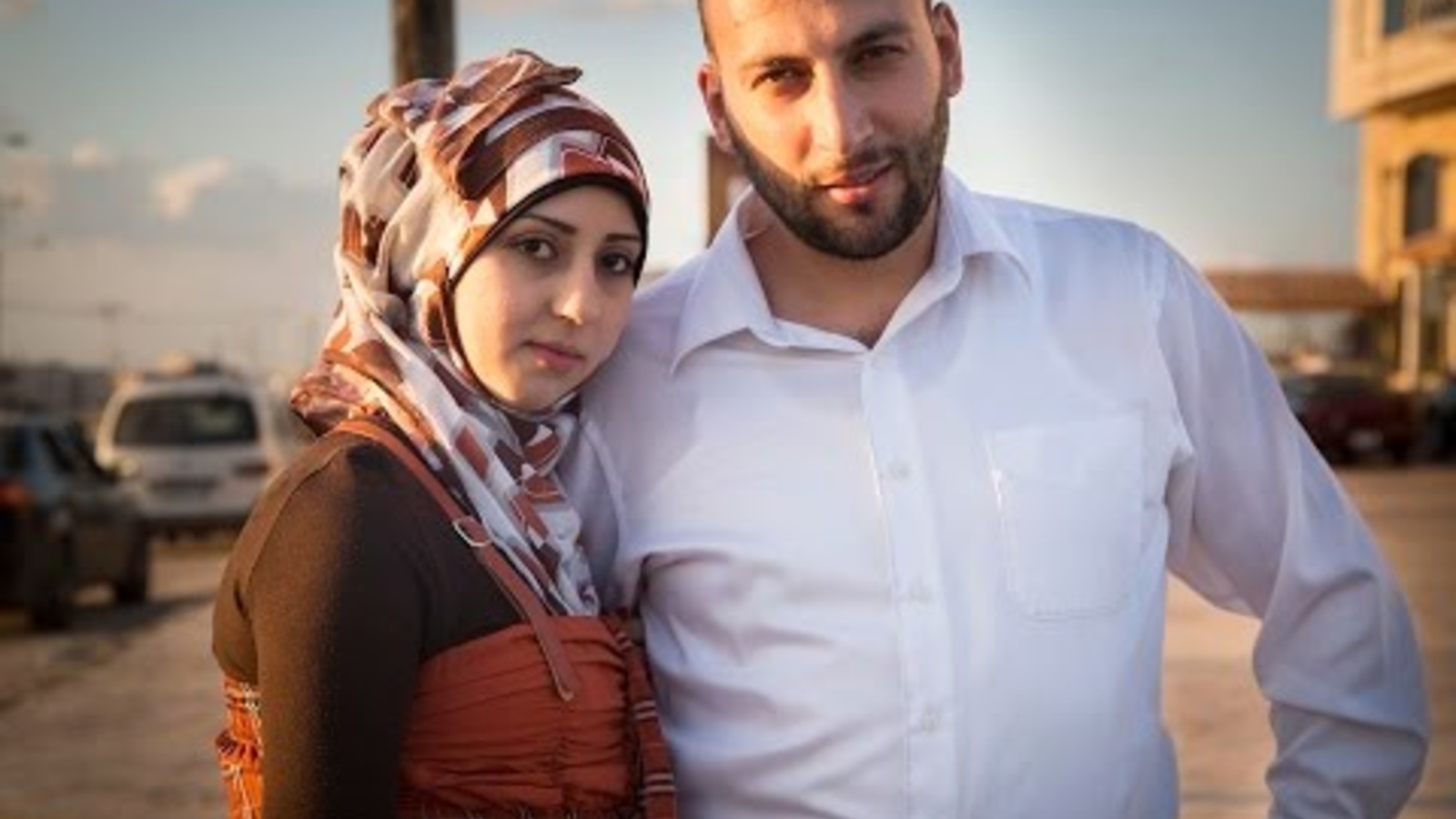 نشأ الزوجان في الحي نفسه في مدينة درعا في جنوب سوريا ولكنّهما لم يلتقيا ببعضهما قبل أن تعرّفهما والدتاهما على بعضهما البعض في أبريل/نيسان 2014.