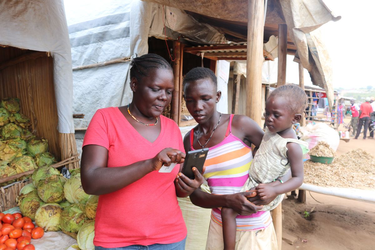 باكو ديانا، البالغة من العمر 32 عاماً، من بلدة يومبي القريبة، هي واحدة من بين أربعة أوغنديين تم تدريبهم من قبل منظمة دان تشيرتش ايد على استخدام تطبيق القسيمة الإلكترونية. تبيع فاكهتها وخضارها مباشرةً للاجئين الذين يستخدمون بطاقات القسائم الإلكترونية.