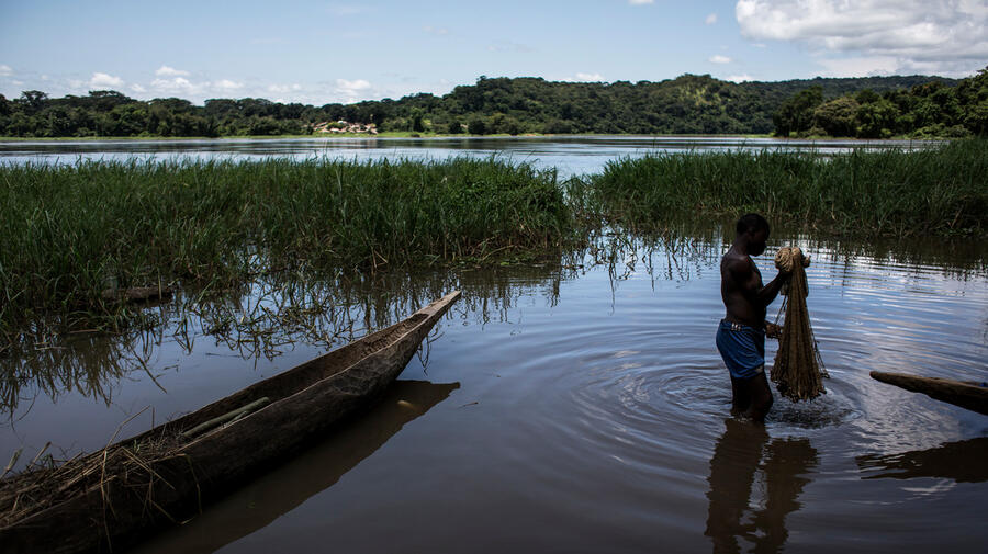 على بعد 10 دقائق بالزورق، تقع أطلال قرية وابيل في جمهورية إفريقيا الوسطى التي دمرتها الحرب والتي فرّ منها مع عائلته في مايو من العام الماضي مع اقتراب القتال بين الجماعات المسلحة المتصارعة.