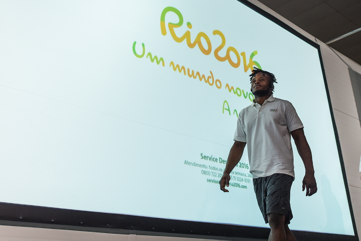وجد أعضاء فريق اللاجئين السودانيون الجنوبيون الخمسة حشداً كبيراً في انتظارهم في مطار ريو حيث حظيوا باستقبال حار! كونوا الصداقات ورحب بهم الجميع حتى قبل مغادرتهم المطار.
