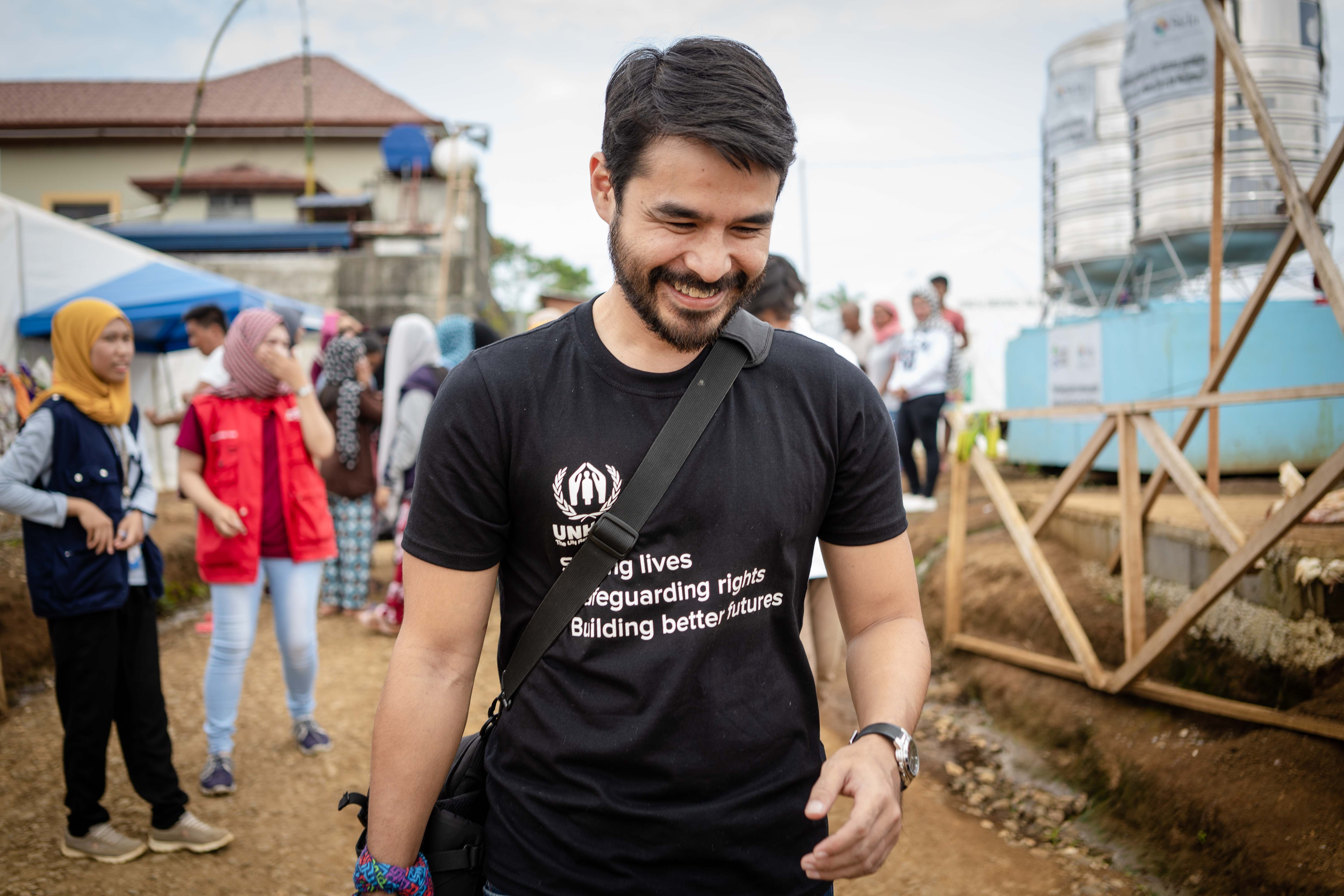 انضم داعم المفوضية الفلبيني والصحفي الإذاعي أتوم أرولو إلى المفوضية و"يونيكلو" خلال توزيع لوازم الإغاثة الأساسية والملابس على العائلات النازحة.