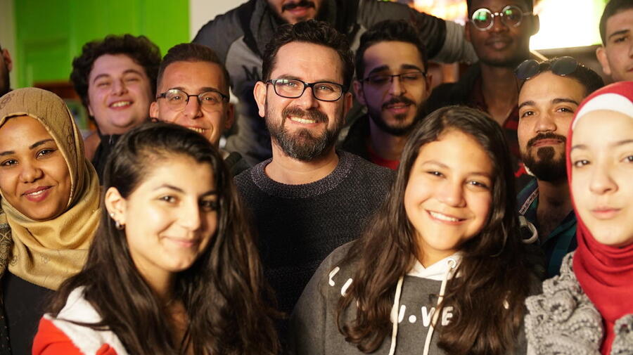 يستخدم المخرج المسرحي باسم الدروس لتوفير مساحة آمنة للاجئين الشباب والسكان المحليين في الإسكندرية، وبناء ثقتهم بأنفسهم.