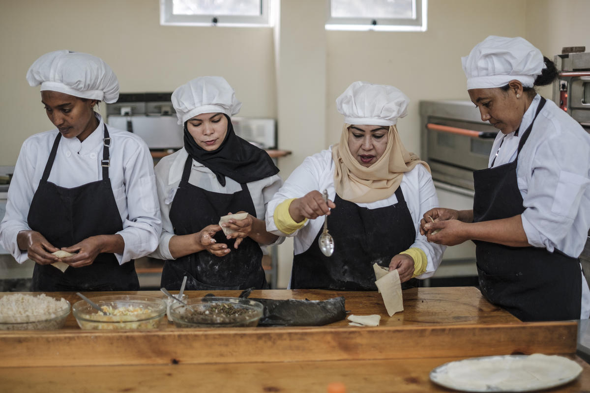 كونت النساء صداقات أثناء حضورهن دورة تدريبية مهنية في كلية "نيفاس سيلك" للفنون التطبيقية في أديس أبابا، وهي الأولى من نوعها في إثيوبيا، حيث يمكن للاجئين والإثيوبيين معاً دراسة مواد تتراوح ما بين الطهي والأشغال الخشبية إلى الأعمال الميكانيكية.