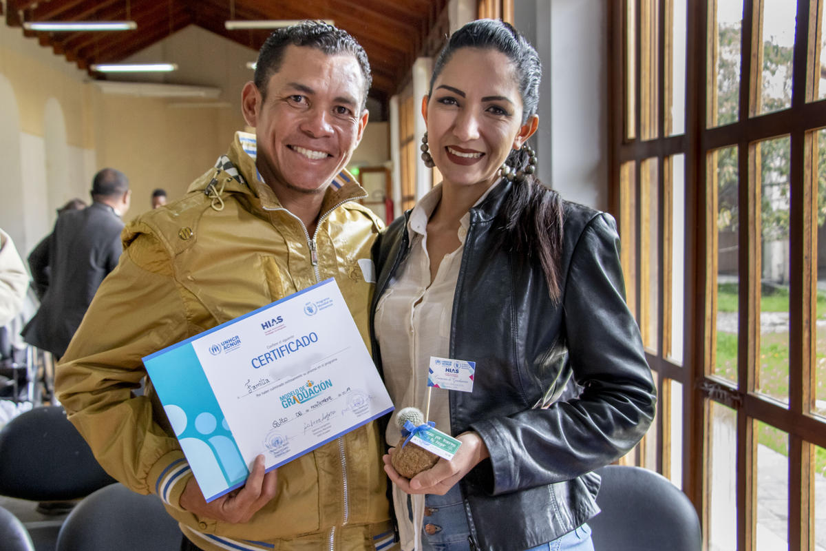 في يوم التخرج، ابتسم الزوجان أوسمار* وفاليريا* بكل فخر. لكن هذا التخرج المتميز والخاص جداً لم يكرم إنجازات الزوجين خلال أيام الدراسة فحسب، بل كان إنجازاً لجميع أفراد الأسرة، حيث أنهما أكملا برنامجاً يهدف إلى المساعدة في انتشال اللاجئين من الفقر المدقع وتوفير الوسائل اللازمة لهم لإعادة بناء حياتهم.