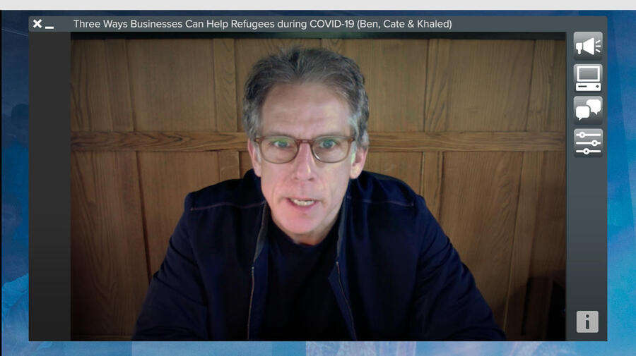 فقد كانت المكالمة بين الممثلين بن ستيلر وكيت بلانشيت والكاتب خالد حسيني، وهم جميعهم سفراء النوايا الحسنة للمفوضية السامية للأمم المتحدة لشؤون اللاجئين. ودار موضوع الجلسة حول ما يمكن أن يفعله القطاع الخاص لدعم اللاجئين خلال هذه الأزمة الصحية العالمية.