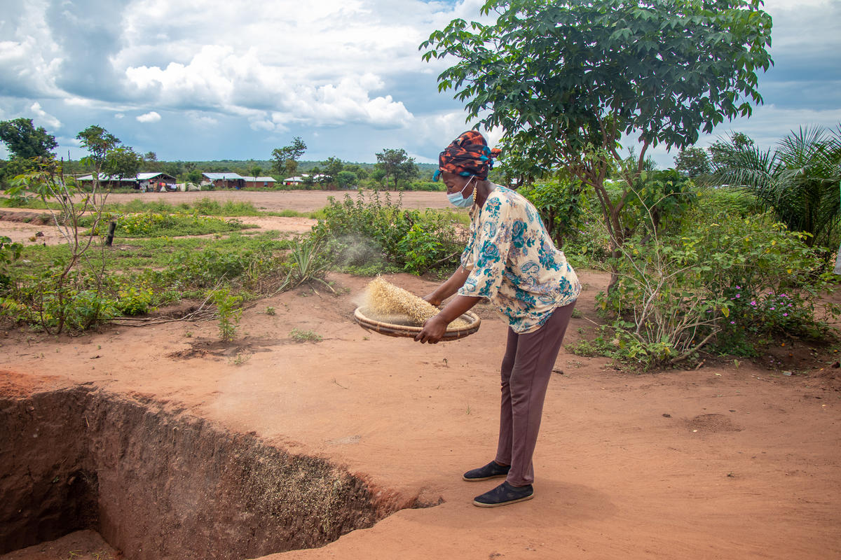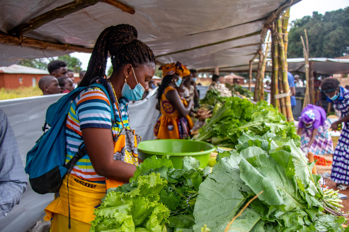 تدعم المفوضية بانتظام المزارعين اللاجئين بالبذور المتنوعة والأدوات الزراعية وأحذية العمل والأسمدة وحتى حيوانات المزرعة مثل الدجاج والخنازير. ويتلقى حوالي 60 مزارعاً من ثلاثة مجتمعات محلية بالقرب من المخيم، وهي مواموكومبو وناجينغا وساكاتانغي، حصصاً تدريبية زراعية منتظمة من خلال مشروع زراعي بقيادة شريك المفوضية في مجال سبل العيش ADPP.