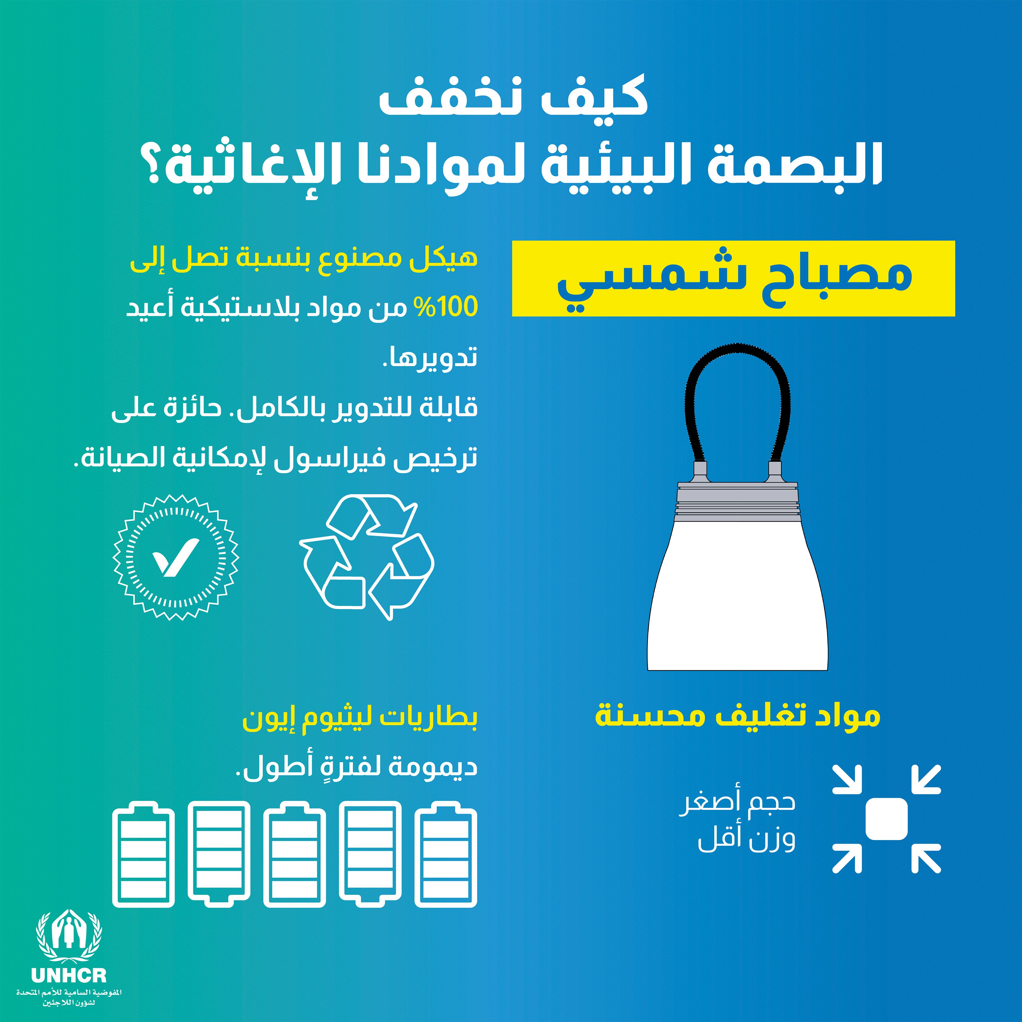 ونظراً لأن أزمة المناخ تجعل الحياة أكثر خطورة بالنسبة لأولئك المجبرين على الفرار، فإننا نعمل على تغيير الطريقة التي نقدم بها الحماية ونوصل من خلالها المساعدات. ويشمل ذلك الالتزام بخفض البصمة الكربونية الناتجة عن مواد المفوضية الإغاثية بنسبة 20 بالمائة بحلول عام 2025. ولتحقيق ذلك، فإننا نعمل على إيجاد طرق لجعل سلسلة التوريد بأكملها أكثر استدامة مع دعم الاقتصادات المحلية أيضاً، وإيجاد الفرص للاجئين والمجتمعات المضيفة لهم. إليكم الطريقة: