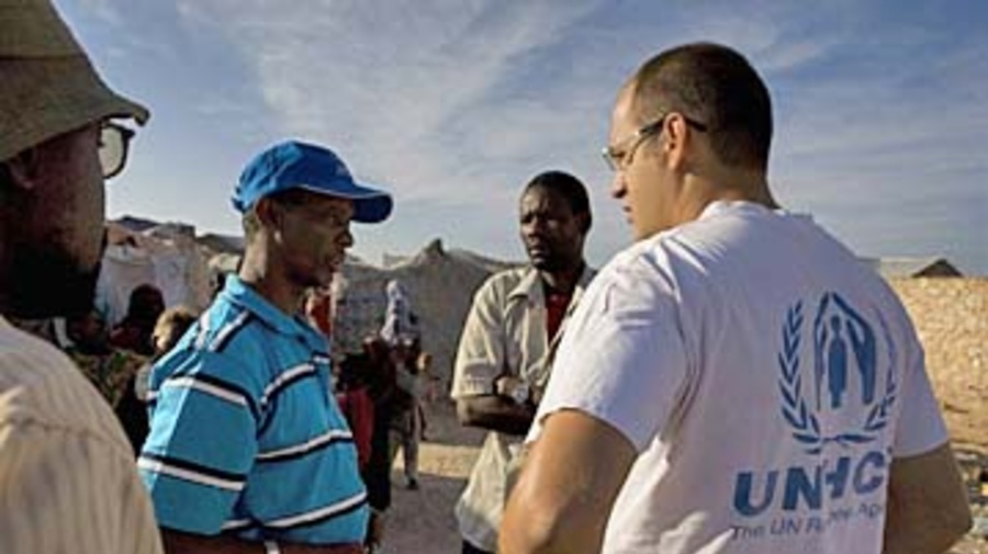 UNHCR workers help internally displaced people (IDPs) in Somalia. Thousands of IDPs celebrated the release of Hassan Mohammed Ali, head of UNHCR's office in Mogadishu, who was abducted in June by unknown gunmen.