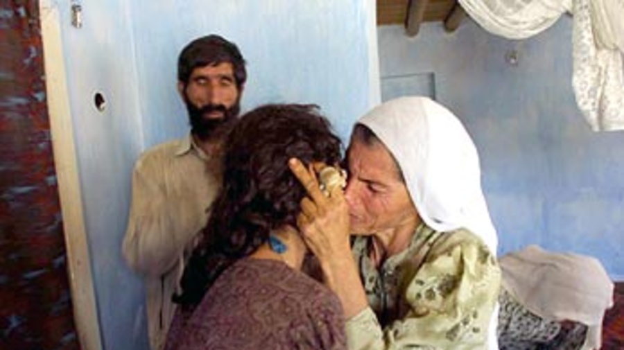 Afghan returnees from Pakistan receiving a warm family welcome in Kabul.