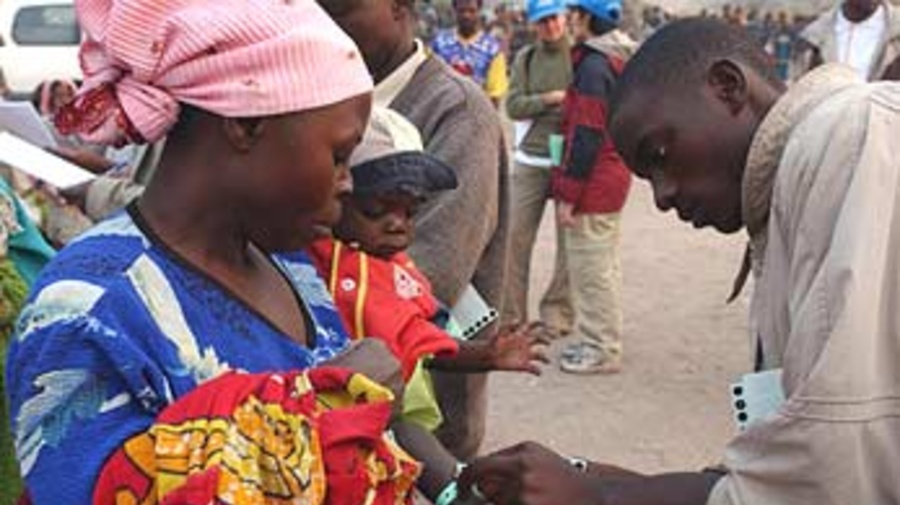 Wrist bands for Angolan refugees who have registered to return from Divuma camp in the Democratic Republic of the Congo.