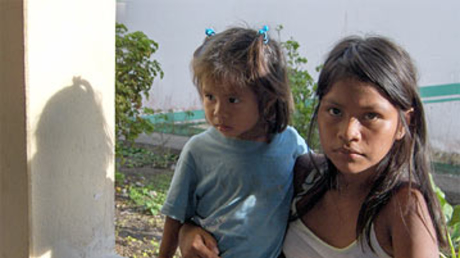 Two Kechwa girls who recently fled renewed violence in Colombia, at the UNHCR shelter in Lago Agrio, Ecuador.