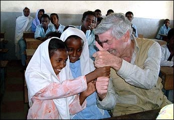 High Commissioner Ruud Lubbers with returnee girls at a school in Gerset, western Eritrea.