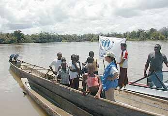 The mobile documentation unit is just one means to reach these displaced communities. In some cases where access to a village or town is less difficult, documents are provided with UNHCR support through the existing local infrastructure. In others, however, not even the mobile unit can make the trek through impenetrable jungle, and other means have to be found to reach the displaced.