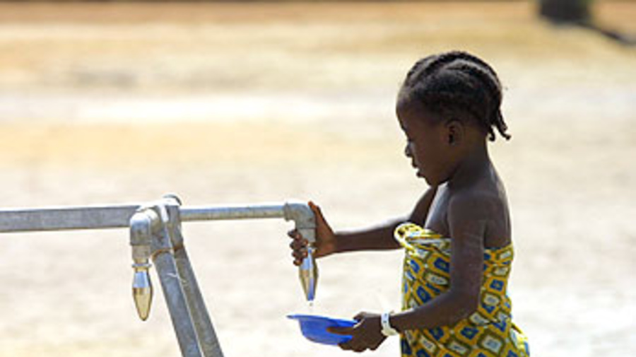 A young Liberian refugee in Tabou, where clean water is in short supply.