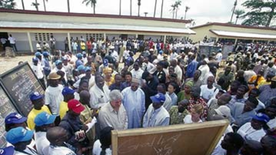 The High Commissioner visiting Liberian refugees in Guinea in 2003.